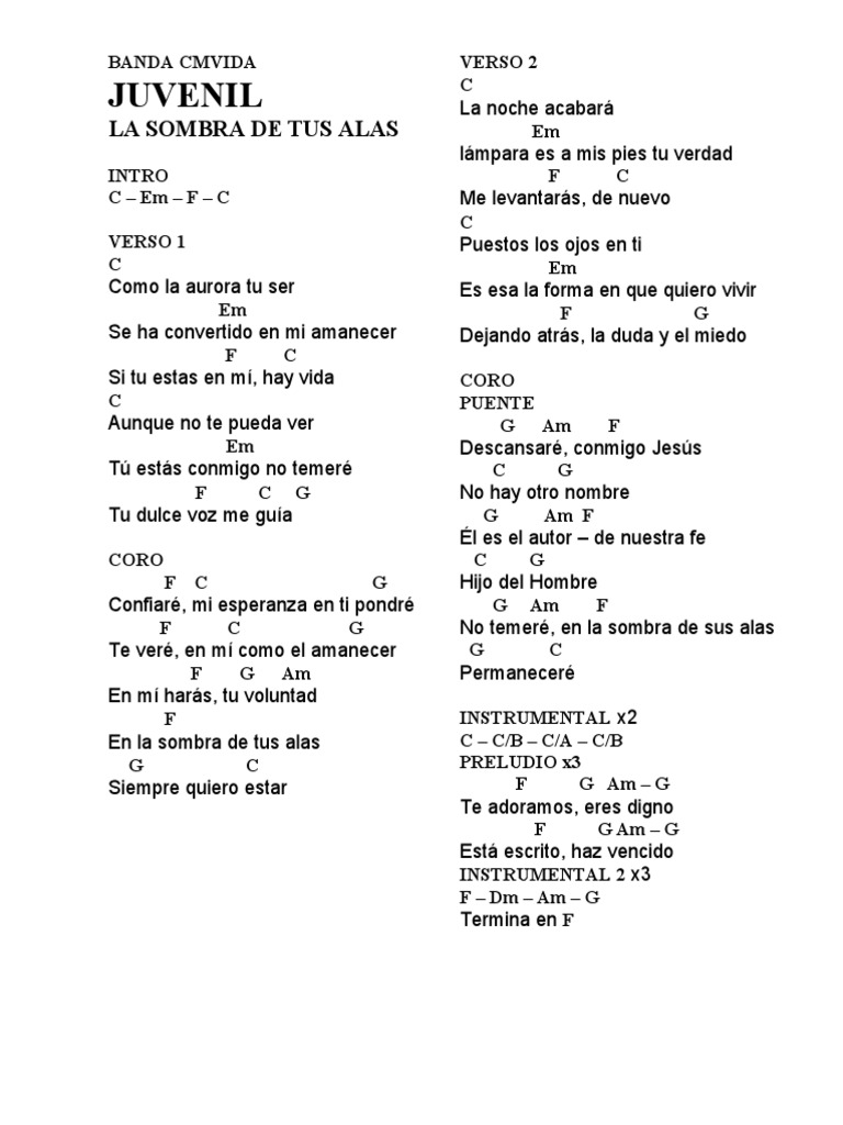La Sombra De Tus Alas Letra / Mi esperanza en ti pondré f c g te veré.