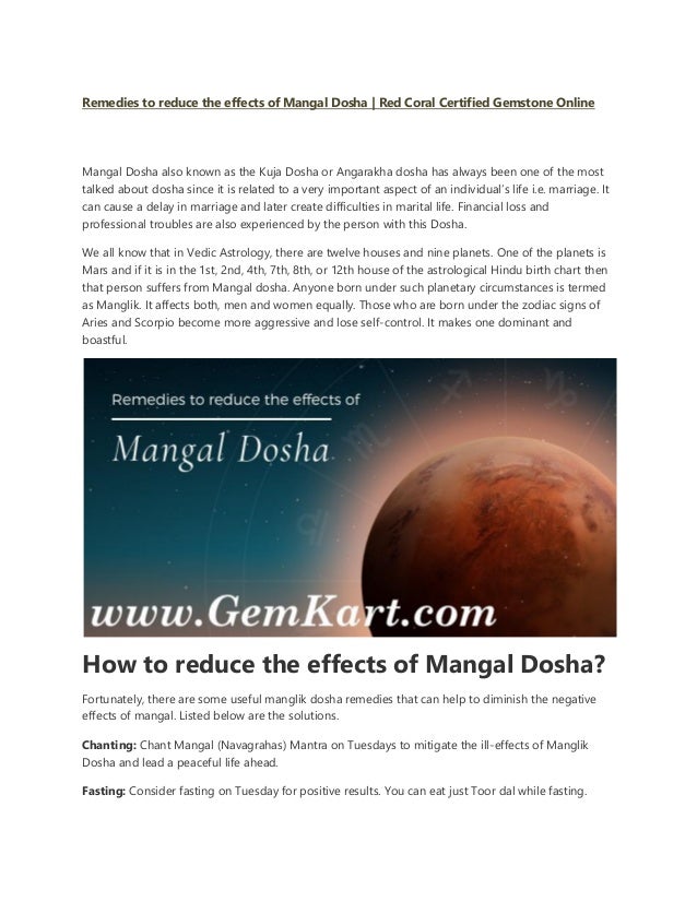 Mangal Dosha Effects / Mangal dosha is a a house hold name in indian astrology.