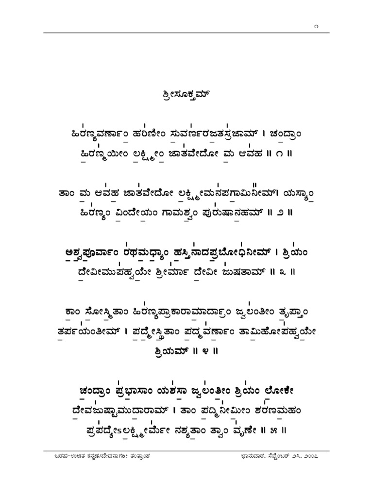 Shri Suktam Lyrics In Kannada - A collection of spiritual and devotional literature in various indian languages in sanskrit, samskrutam, hindia, telugu, kannada, tamil, malayalam, gujarati, bengali, oriya, english scripts with pdf.